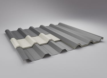 As telhas sanduíche são compostas por duas chapas metálicas com um núcleo isolante entre elas. São a solução ideal para quem busca máximo conforto térmico e acústico, reduzindo drasticamente o calor e o ruído externo.